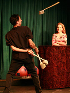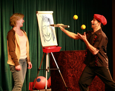 ![]() Drawing a volunteer's portrait while juggling at the same time. ...Even Picasso could not do that! |